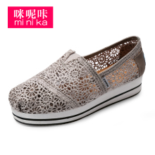 咪呢咔2017春款糖果色镂空松糕厚底帆布摇摇鞋女韩版潮坡跟女鞋