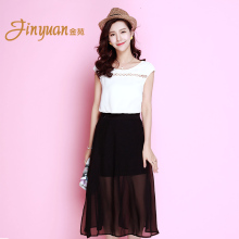 金苑2016夏季新品纯色百搭无袖女装圆领雪纺两件套连衣裙潮G62200
