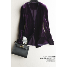 2017春装新款欧美高端女装一粒扣丝绒修身显瘦小西装外套女5418