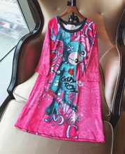 KIKI家泰国潮牌大码女装胖mm前后印花个性长款T恤短袖休闲连衣裙