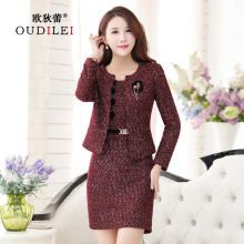 欧狄蕾套装裙2016秋冬季新品女装包臀背心裙长袖外套两件套连衣裙