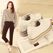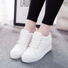 2017春季透气网内增高女鞋小白鞋单鞋系带厚底坡跟低帮松糕休闲鞋