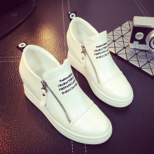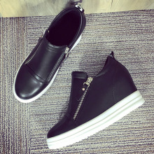 单鞋女春天2017新款百搭圆头学生双拉链坡跟内增高时尚韩版休闲鞋