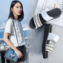 头层牛皮平底鞋2017春夏季新款真皮小白鞋女韩版百搭珍珠水钻单鞋
