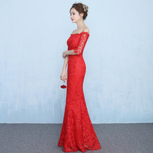 新娘敬酒服2017新款春季红色一字肩长款鱼尾结婚礼服旗袍连衣裙女