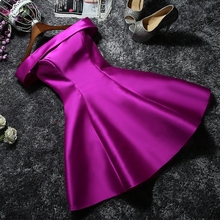 宴会晚礼服2017新款紫色一字肩短款显瘦伴娘服聚会小礼服连衣裙女