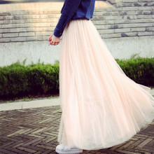 2017新品春季网纱裙半身裙长裙a字蓬蓬裙高腰裙子夏季百褶中长款