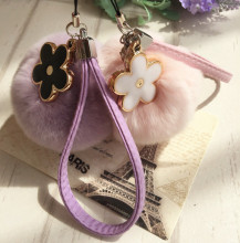 包邮韩国创意獭兔毛球手机链包包挂件相机绳自拍神器毛绒球皮绳款
