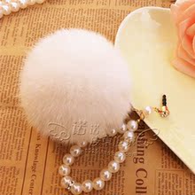 包邮毛球iphone4s 6P苹果5兔毛球珍珠手机链 手机挂件潮配防尘塞