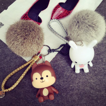 韩国创意新品流苏男女汽车钥匙扣毛绒獭兔毛球包包挂饰背包挂件
