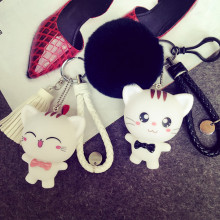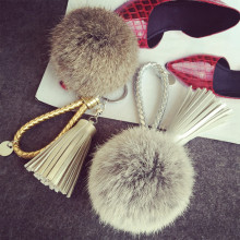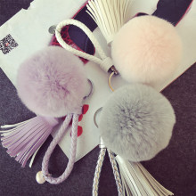 新品韩国创意编织绳流苏男女情侣汽车钥匙扣包挂件毛绒球兔毛挂饰