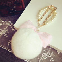 特价包邮韩版兔毛球手机链珍珠蝴蝶结挂件可爱毛绒球防尘塞