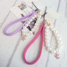 新款韩国珍珠手机链包挂件相机绳/自拍神器/大白U盘挂绳皮绳包邮