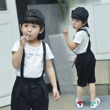 尊仕鹿儿童夏装新款童装男童背带裤套装中小童宝宝夏季短袖两件套