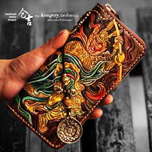 仓吉手工包植鞣革牛皮雕刻钱包齐天大圣孙悟空男女长款手抓包财布
