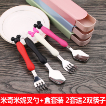 不锈钢创意卡通叉勺 儿童餐具 米奇米妮勺子叉子 宝宝叉勺