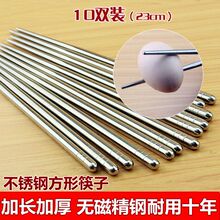 不锈钢筷子304家用防滑 创意合金筷方形防滑金属套装筷子5双10双