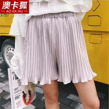 春夏雪纺百褶阔腿裤高腰九分裤韩版学生显瘦休闲裤女宽松直筒裙裤