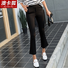 春夏季微喇叭裤女高腰九分裤韩版黑色阔腿裤显瘦大码休闲长裤