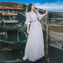 夏装文艺范复古森女刺绣显瘦连衣裙波西米亚大摆度假沙滩长裙仙