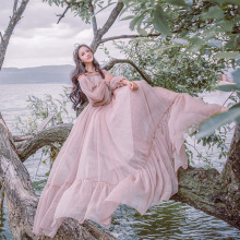 文艺复古收腰蕾丝大摆长裙高腰仙女神海边度假沙滩连衣裙夏女学生