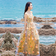 夏装新款女装名媛网纱刺绣立体蝴蝶仙女无袖长裙子度假裙连衣裙