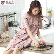 大码薄款纯棉睡裙女夏季短袖卡通家居服可爱韩版全棉夏天宽松睡衣