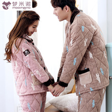 梦米诺冬季情侣睡衣卡通三层加厚夹棉里外纯棉男女长袖家居服套装