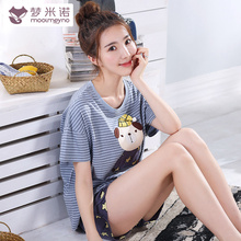 卡通休闲夏季短袖宽松套装睡衣女夏天纯棉可爱薄款韩版甜美家居服