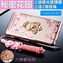 送钢化膜 红米3手机壳 Redmi 3标准版软硅胶套挂绳全包保护外壳潮