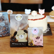 卡通小猫小狗 磨砂半透明曲奇袋 面包饼干袋 烘焙西点袋 50个装