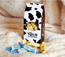 黑色奶牛开窗牛轧糖盒 牛轧糖开窗屋顶盒 点心包装盒 屋顶盒
