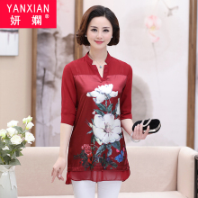 妈妈短袖t恤女夏40-50岁2017新款宽松中年女装夏装雪纺衫中长上衣
