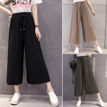夏装新款韩版显瘦休闲直筒裤宽松裙裤高腰雪纺百褶阔腿裤女九分裤