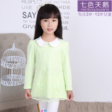七色天鹅 女童T恤长袖春秋装公主童装蕾丝中大小童上衣儿童打底衫
