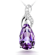 灵诺美 925银项链女时尚锁骨链天然紫水晶水滴吊坠送女友生日礼物