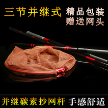 弘日碳素抄网杆 2.1米3米超轻超硬定位抄网 不锈钢折叠抄网头网兜