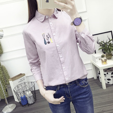 2017春季新款甜美学院风条纹衬衫女长袖小兔子刺绣白衬衣女学生潮