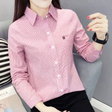春秋新款甜美学院风纯棉条纹衬衫女长袖直筒修身大码学生衬衣女潮