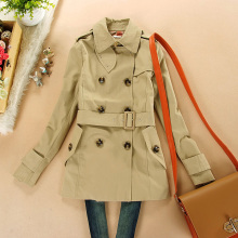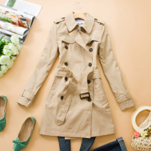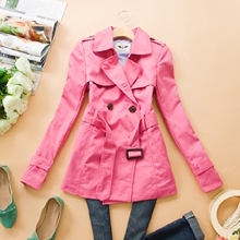 2017春秋经典双排扣修身韩版小熊维尼学院中长款风衣女式风衣