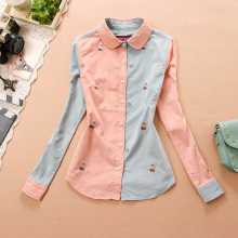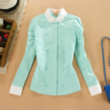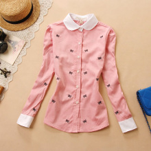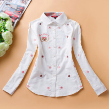 小熊维尼2016春秋装学院风少女学生纯棉衬衫绣花修身长袖打底衬衣