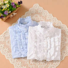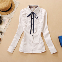 2016秋装学院风学生少女白衬衣花边修身小熊维尼长袖衬衫工服衬衣