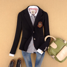 小熊学院英伦风秋装韩版徽章修身小西装外套女短款休闲中学生西服