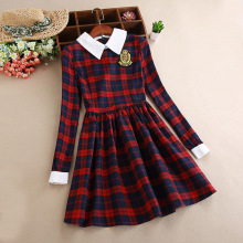 2017春学院英伦风小熊维尼格子少女中学生长袖连衣裙校服裙表演裙