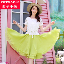 西子小荷2017夏装新款女装短袖网纱少女仙气连衣裙女a字裙学生裙