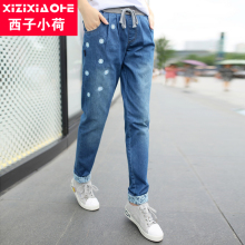 西子小荷牛仔裤女春夏季2017新款少女学生阔腿长裤刺绣哈伦裤高腰