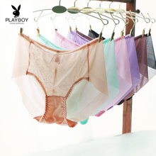 2件花花公子无痕内裤女蕾丝透明性感网纱女士内裤情趣夏季透气薄
