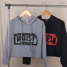 2017春季新款韩版学院风复古字母印花贴布抽绳连帽学生短款卫衣女