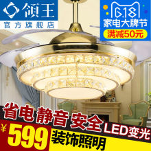 领王隐形水晶风扇灯 客厅餐厅卧室简约现代吊扇灯带led的风扇吊灯