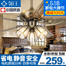 领王隐形吊扇灯 餐厅客厅卧室复古仿古风扇吊灯带LED的中式风扇灯
